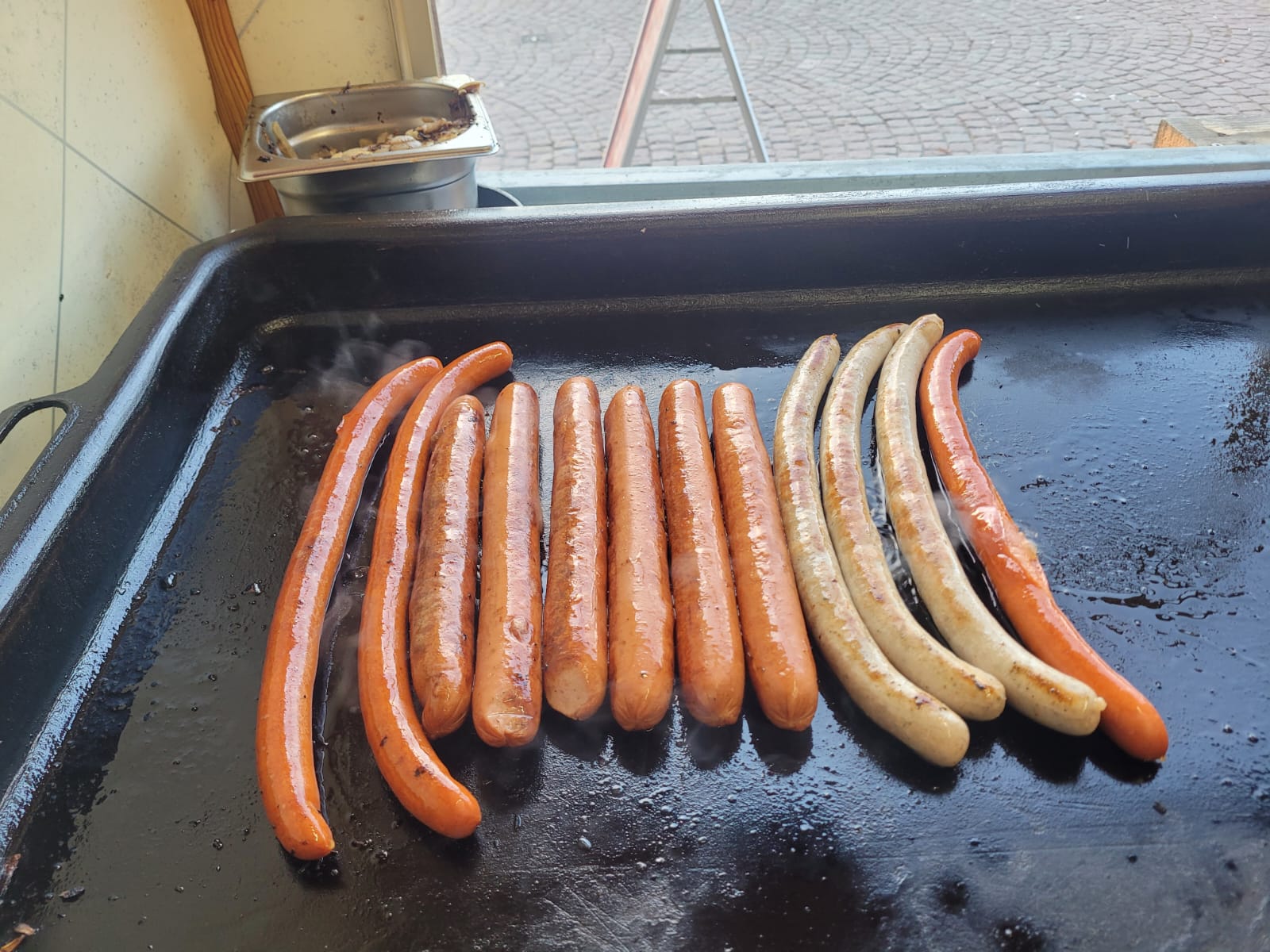 Eine klassische Bratwurst rot, weiss, scharf. Wir beziehen die Ware von regionalen Metzgern